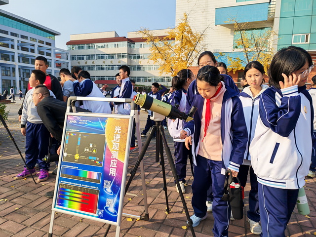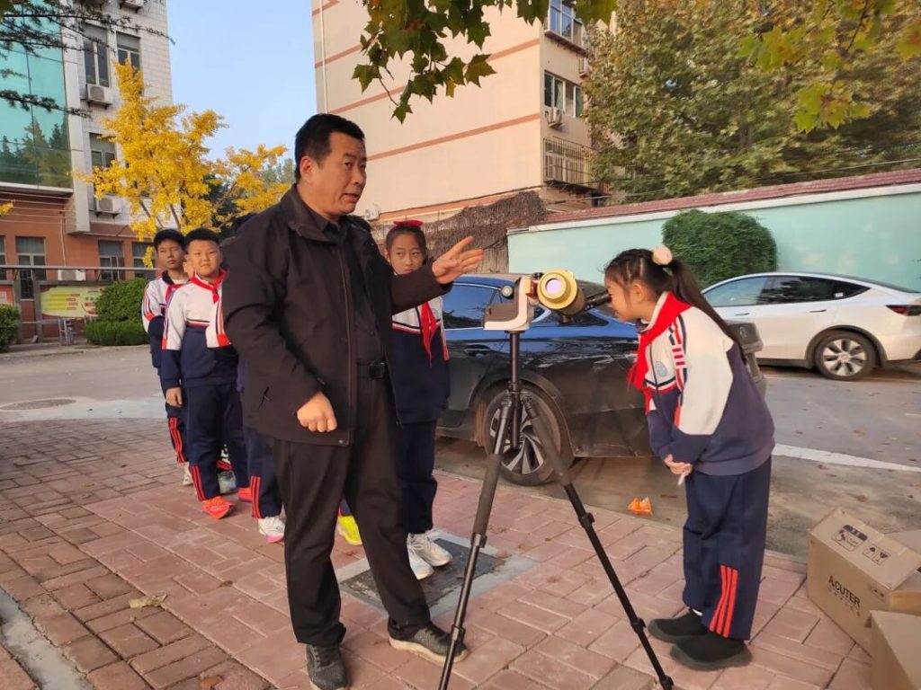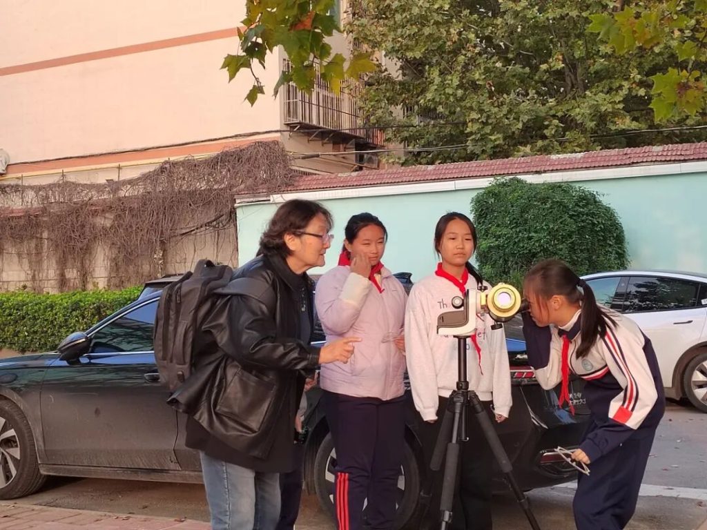 随着室内环节落幕,梁教授和牛秘书长带领师生移步操场。望远镜相继对准太阳和月亮,同学们排着队轮流观测,发现原本遥远的星空此刻触手可及,科学探索的热情在校园里热烈绽放。此次活动让天文学与中小学科学教育深度“牵手”,不仅丰富了教学形式及内容,更激发了学生的科学探索欲。未来,济南汇文实验学校将继续深耕特色科学教育,带领更多学生探索宇宙的无限可能。