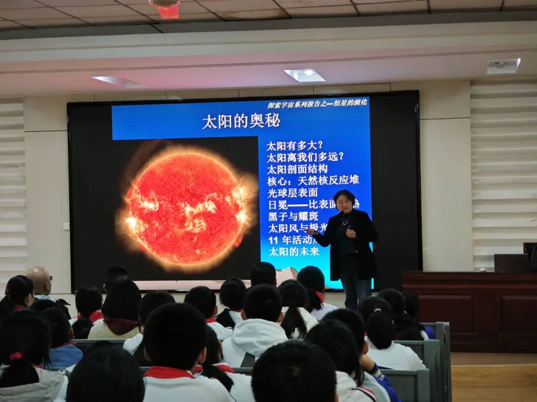 点亮科学梦想活动开场,李文亮校长登台致辞,为活动锚定核心方向:“天文学是连接自然科学与人文想象的桥梁,将其融入科学教育,就是要让学生在仰望星空中学会思考、敢于探索。”他表示,学校将以此次活动为起点,更多地为学生搭建科学成长的平台。特邀专家梁伟教授随后带来干货满满的课程分享。她从“太阳的奥秘”切入,讲述了太阳的相关知识,清晰勾勒出天文学课程“基础认知+前沿探索”的内容框架,让师生直呼“涨知识”。牛桂华秘书长则聚焦“观测实战”。从“为什么白天看不到星星”的基础认知,到太阳系八大行星的运行轨迹。他结合多年观测经验,详细讲解天文望远镜的调试方法、观测目标的选择技巧,并提醒大家观测时的注意事项,为室外实践做好充分准备。